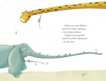 Boleta és una elefanta que voldria ser alta, esvelta i elegant com una girafa. Llarga, en canvi, és una girafa que somia ser una elefanta sàvia, gran i forta. Podrien ser bones amigues, però com s’ho faran si ni tan sols es coneixen?